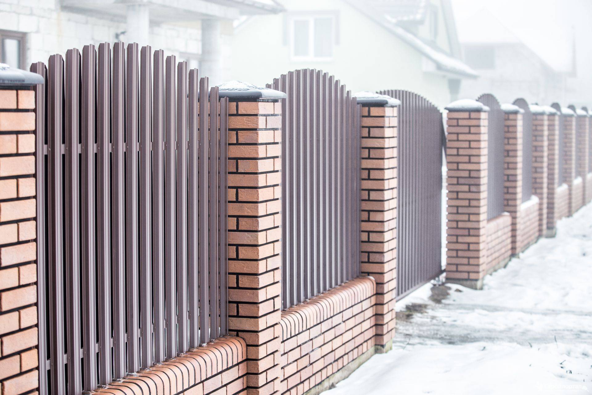 Заборы и ограждения из евроштакетника с кирпичными столбами 40 метров в Владимире