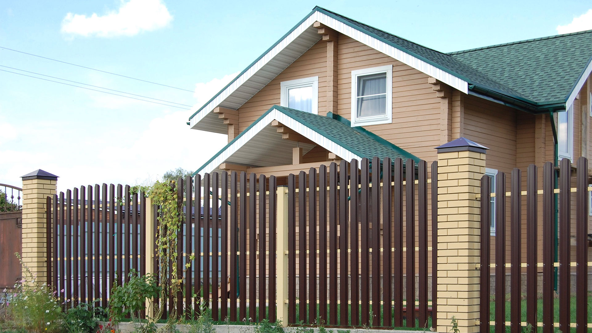 Заборы и ограждения из евроштакетника с кирпичными столбами 30 соток в Владимире